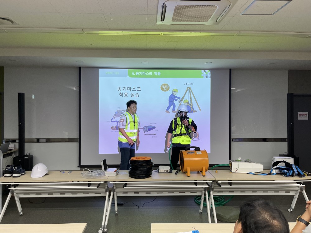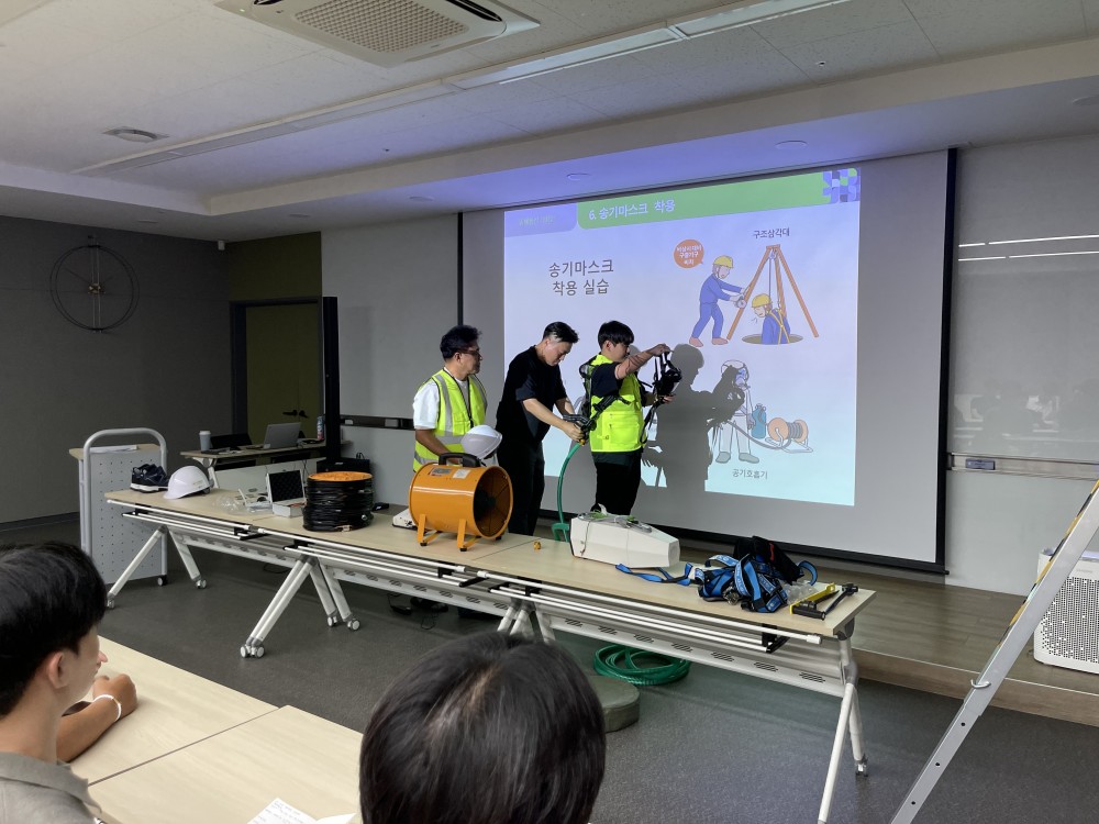 이어서 보호구 착용 방법, 가스 측정기 사용법, 안전장비 실습까지 현장감 있게 진행되었습니다.