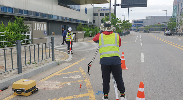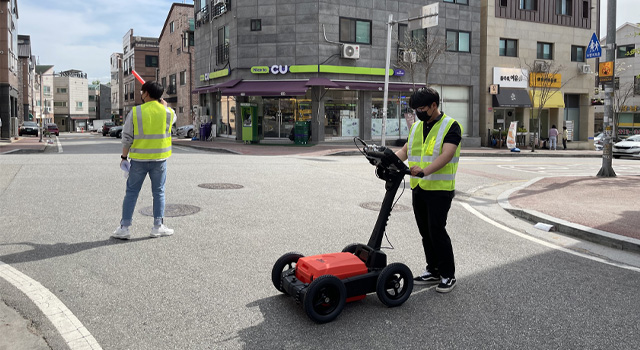주파수 대역의 전자기 펄스를 이용한 지하시설물 위치탐사 방법인 GPR을 활용하여 미구축 관로 또는 위치 정확도가 부정확한 상수도 시설물에 대한 조사/탐사를 실시 하여 데이터의 정확도를 확보하고 있습니다.